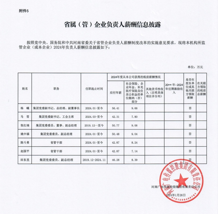 河南广电传媒控股集团2025年度负责人薪酬信息披露
