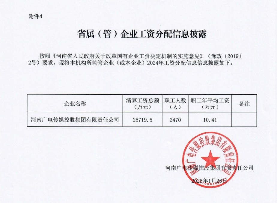 河南广电传媒控股集团2025年度企业工资分配信息披露